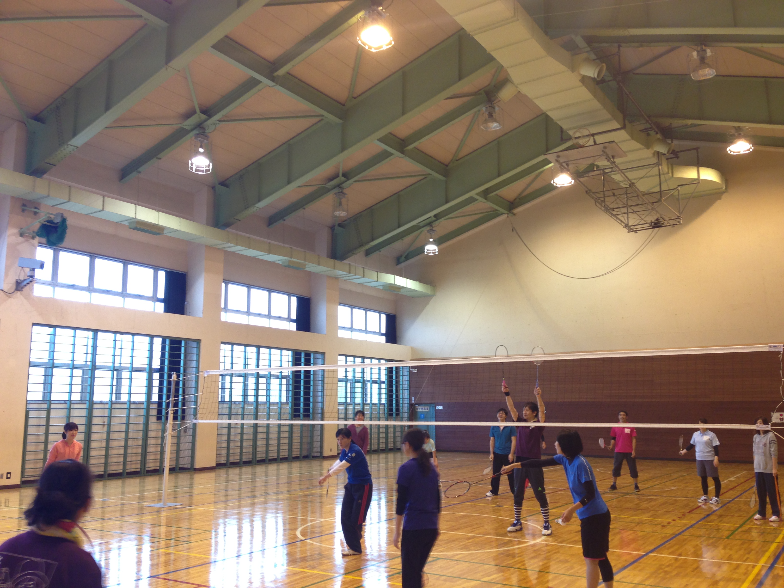 バレーコートでバドをやる!!
