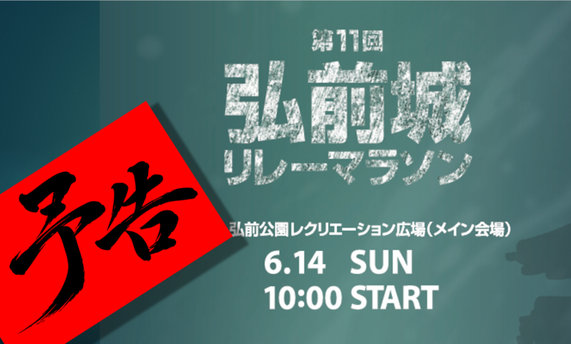 【開催予告】第11回弘前城リレーマラソン!! 2025.12.212025.12.24 ★★★弘前城リレーマラソンは新たなステージへ★★★ 第11回弘前城リレーマラソン開催予告! とき 2026年6月14日(日) 10:00START 場所 弘前公園レクリエーション広場(メイン会場) 2026年2月1日(日)より 参加募集開始予定!