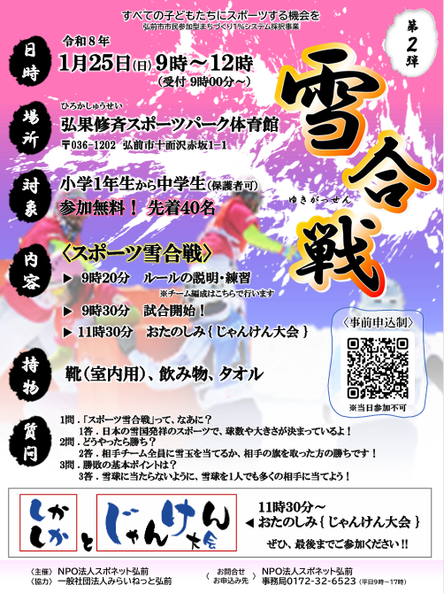 場所 : 弘果修斉スポーツパーク体育館(弘前市十面沢赤坂1-1)